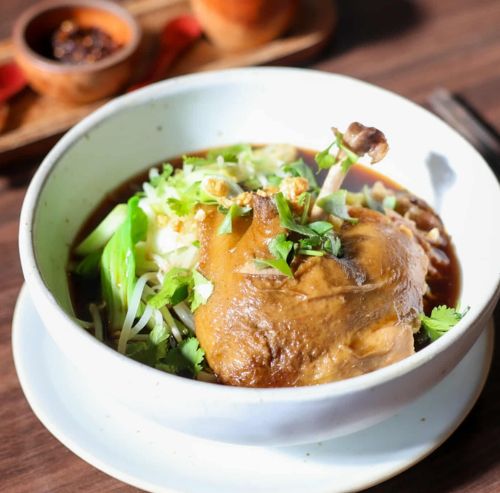 Tender slices of roast duck served with rice noodles, bok choy, bean sprouts, and spring onions in a rich soy-based broth. A comforting bowl full of flavour — savoury, aromatic, and deeply satisfying.